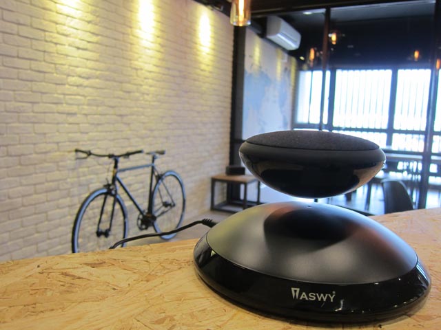 A.スピーカー部分を台座に向かって真上から真っすぐゆっくりと置くとうまく浮遊します。磁力の「芯」をとらえる