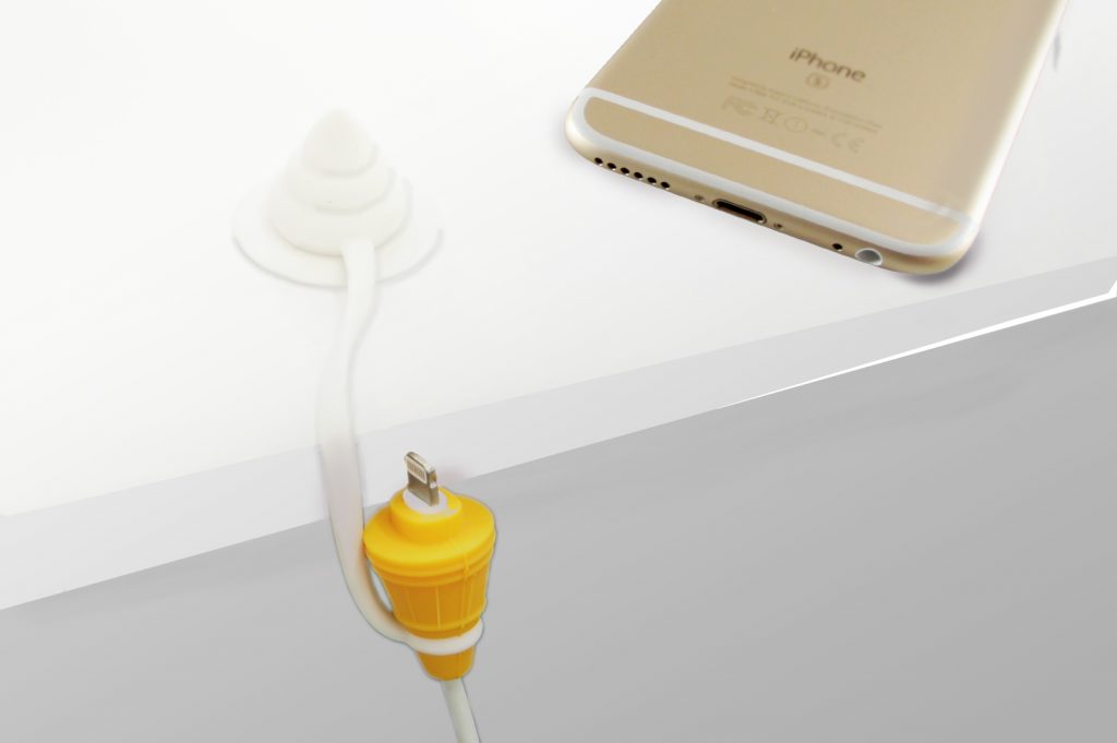 ソフトクリーム部分は吸盤になっているので、机に張り付けてケーブルの落下防止に使ったり、iphone充電中に背面に取り付ければスマホスタンドに大変身!