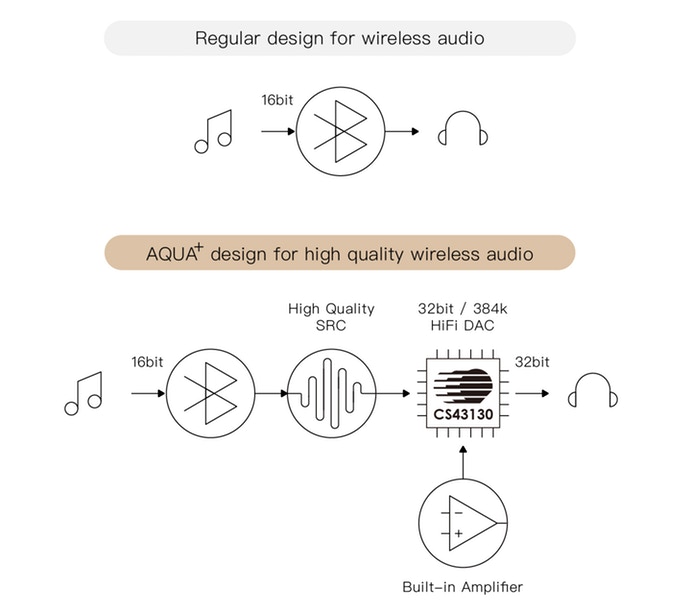 しかし、これまでの長い間、ワイヤレスの音質は技術的な制限によりある程度を犠牲にすることになってしまいました。しかし、それはもはや問題ではありません、今、AQUA+がそれらすべてを解決します!