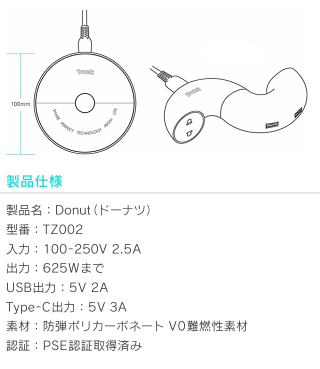 Type-Cポート搭載電源タップ「Donut So」