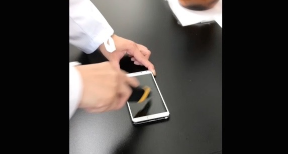 以下の画像は上記動画に登場しているLIQUID_hackを塗布したあと落下テストを行ったスマホです。