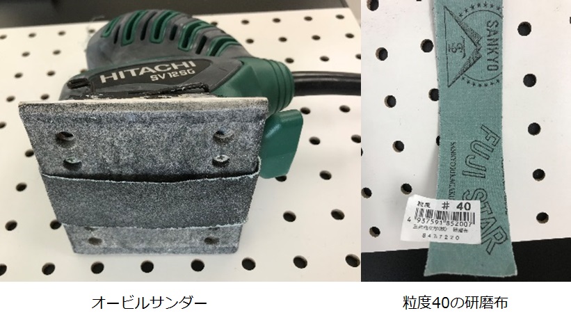 下記の動画では、オービルサンダーに#40の粗めのやすりをつけて1往復しています。LIQUID_hackを塗布したものは、何もしていないものに比べ、明らかに傷の付き方が軽度であることがわかります。