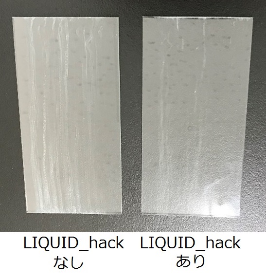 LIQUID_hackは特殊な界面活性剤に荷電化ホモジングという技術で有機ガラスを配合しています。