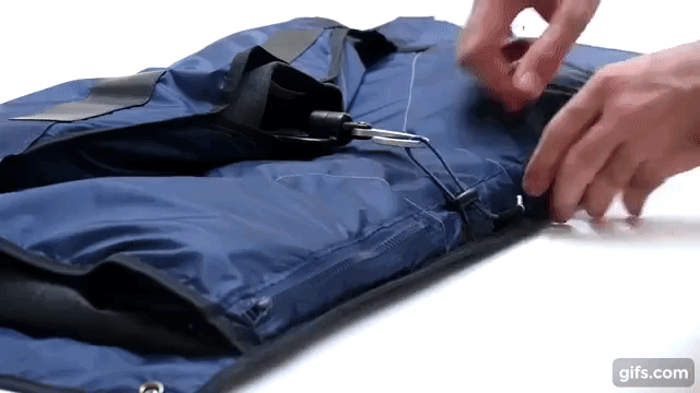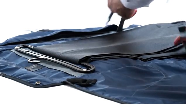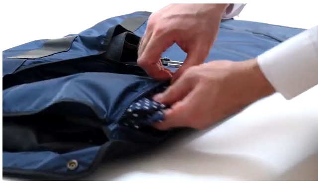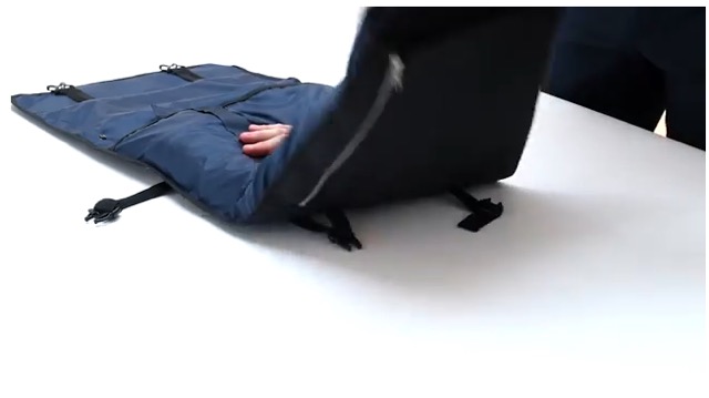 PLIQOは折り畳み時、書類やPCを入れる普通のビジネスバッグにしか見えません。一体このサイズにどうやってスーツを収納しているのでしょう?