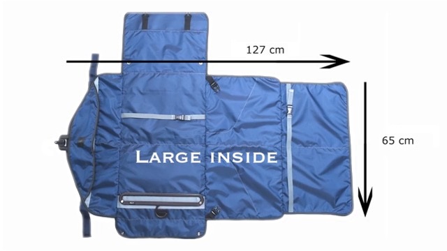 PLIQOは開くと127cm×66cmと余裕のある作りになっています。3Lなど大きなサイズのスーツにも対応しています。