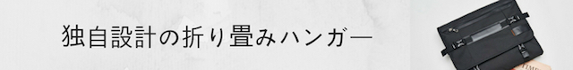 スーツを美しく持ち運ぶために開発された専用ハンガーとバッグの組み合わせにより、ジャケット、ズボン、シャツ、ネクタイやチーフなど一式を約B4サイズに収納。もちろんシワをつけることなく、さっと開いてすぐ着用OK。