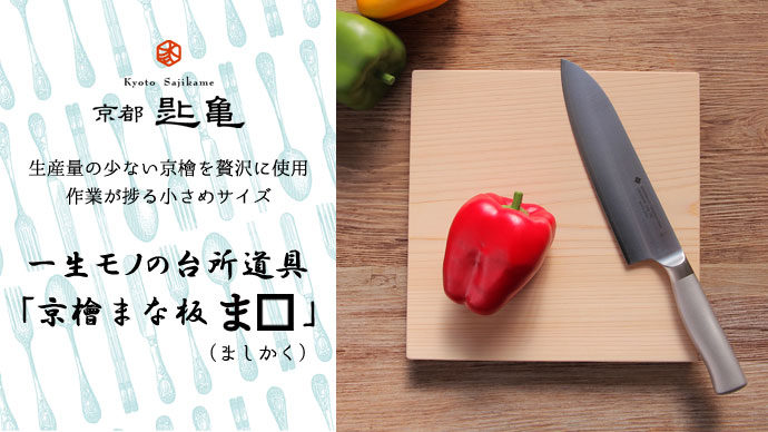 京都の台所道具店と職人が作る一生モノの「京檜まな板 ま□(ましかく)」